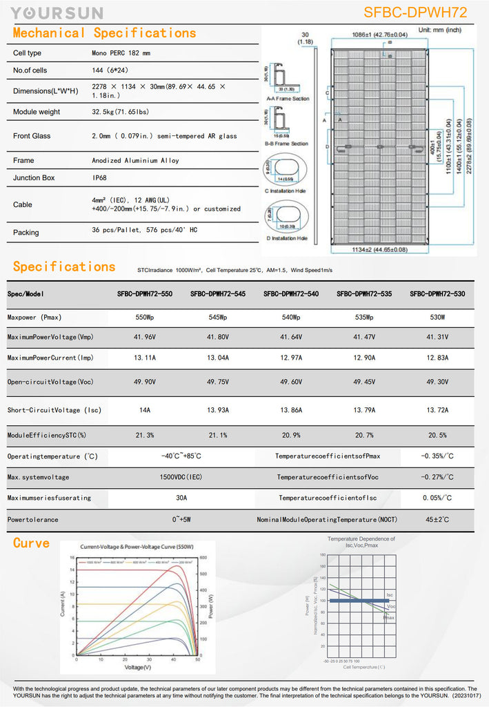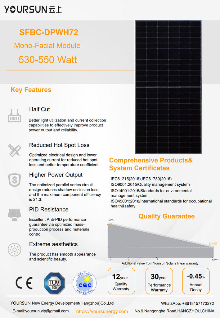 Product Details - DPWH72 (530W-550W)